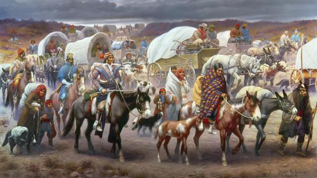 ▲ 1830 年《印第安人迁移法案》颁布后,美国政府动用军队逼迫大量印第安人向西长途迁移,成千上万人丧命途中。