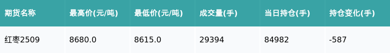 南财智讯6月3日电,南财金融终端盘后期货数据显示,郑州商品交易所的红枣主力合约收跌0.23%合优投资,收盘报8625.0元/吨,日内资金流出891.35万元。其他相关指标见下表: